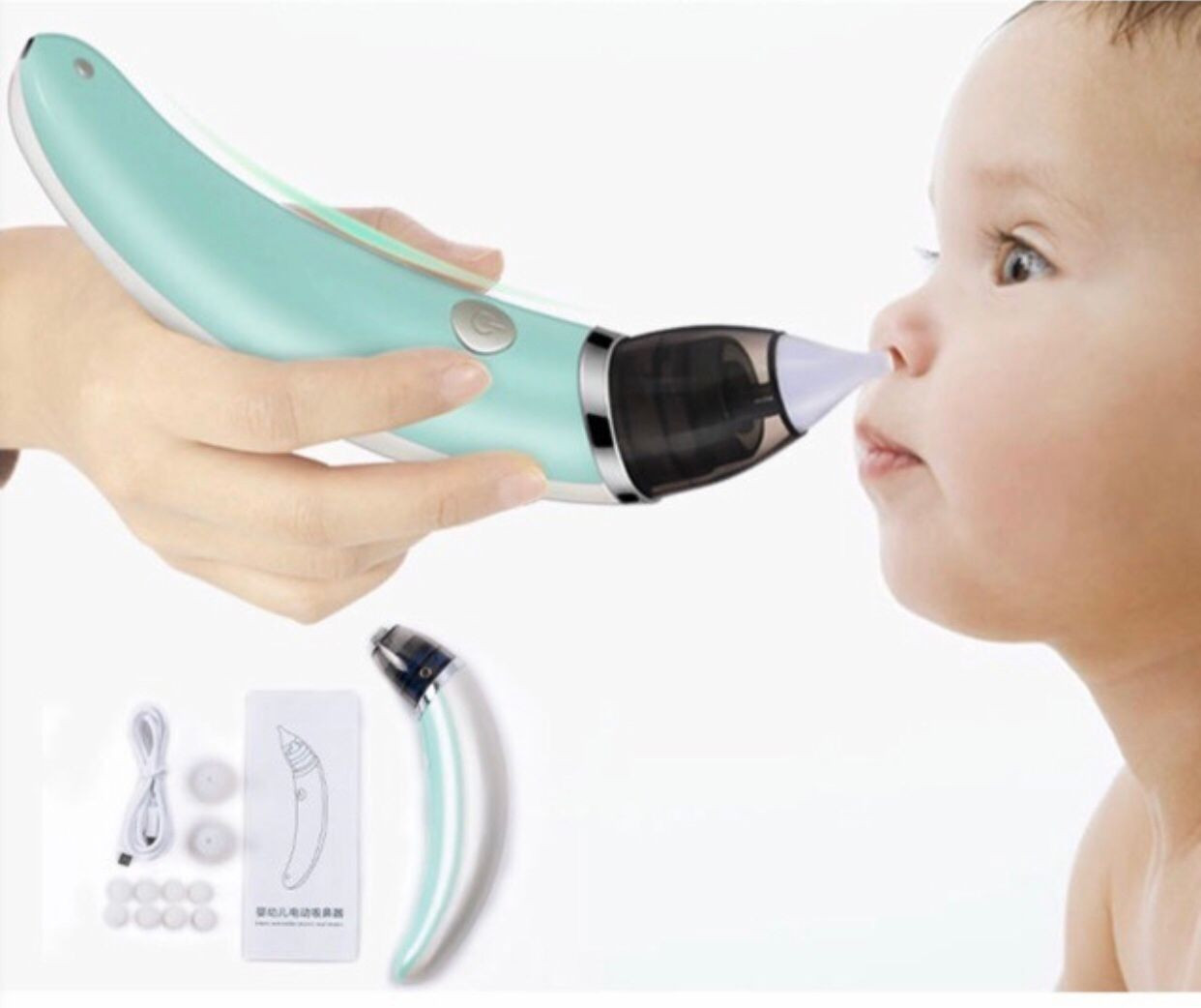 Aspiratorul nazal electronic este recomandat de experti si de o multime de parinti multumiti. Potrivit pentru sugari si copii – Cele doua adaptoare din silicon moale pot fi utilizate pentru nou-nascuti si copii cu varsta peste 2 ani. Acestea nu contin substante toxice si, prin urmare, sunt complet sigure de utilizat de catre copii. Silentios si delicat – Atat de silentios incat va permite sa curatati nasul copilului in timp ce acesta doarme. Aspiratorul cu rata foarte eficient un nas infundat si poate fi apoi curatat in cateva secunde. De asemenea, poate fi utiliza si in cazul copiilor cu infectii cronice ale tractului respirator superior. Puterea de aspirare a aspiratorului poate fi reglata cu usurinta in functie de gravitatea obstructiei nazale. Imbunatateste starea de bine a copilului dumneavoastra – Ultima generatie de aspiratoare nazale electronice este conceputa pentru a asigura un nas curat in cazul copilului si o noapte de somn odihnitoare in cazul intregii familii. Dupa utilizare, curatati aspiratorul cu apa calda. Contine 2 tipuri de adaptoare din silicon pentru copii de toate varstele. Este usor de transportat, poate fi utilizat oriunde si oricand. Beneficii : Diferite accesorii din silicon pentru copii de vârstă diferită Puterea de aspirare reglabilă Ușor de curățat după utilizare Fără nasul înfundat Aspiratorul este complet sigur pentru utilizare chiar și pentru cei mai mici Aspiratorul conține două accesorii moale din silicon potrivite pentru nou-născuți și copii cu vârsta de peste doi ani Design ergonomic cu radian umanizat, confortabil de ținut în mână. Încărcare prin cablu USB, ușor de încărcat și durabil de utilizat. Construcția anti-reflux împiedică reintrarea mucusului în nas. Mentiune: Vanzatorul face eforturi permanente pentru a pastra acuratetea informatiilor din acesta pagina. Rareori acestea pot contine inadvertente: Imaginile folosite si textele de pe SITE au caracter informativ și pot varia sau diferi ocazional față de caracteristicile produselor prezentate. Toate promotiile prezente in site sunt valabile in limita stocului.