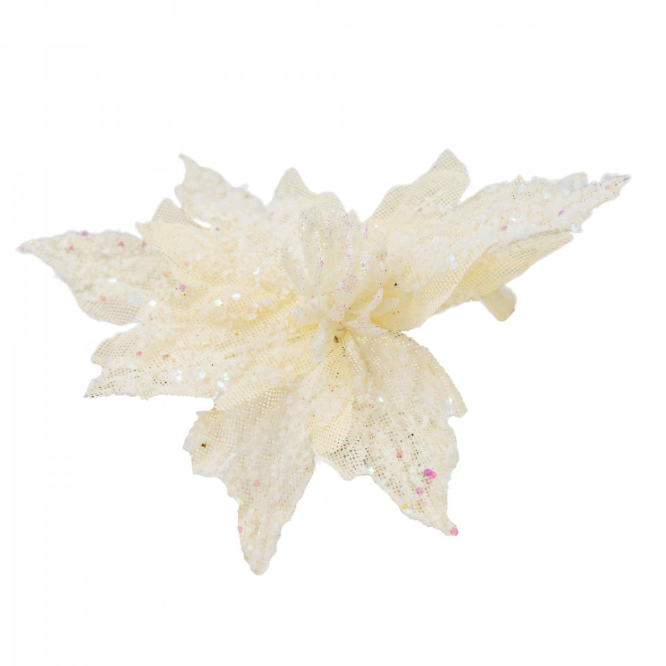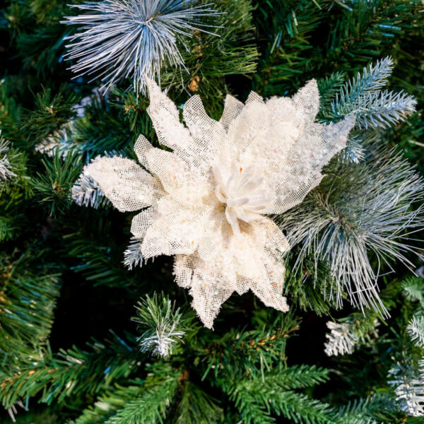Descriere Decoratiune pentru brad in forma de floare, culoare alb, dimensiune 24 cm, MI-1057