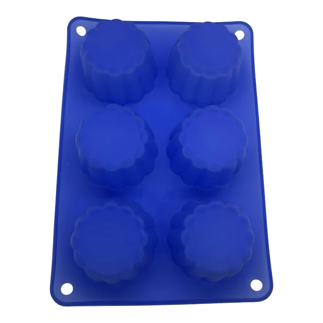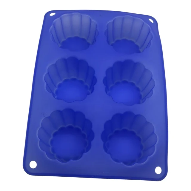 - Forma are șase cavități individuale, fiecare cu un design festonat, asemănător unei flori sau scoici