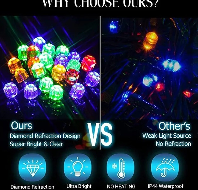 Instalatie de Craciun 102 Alb , Model V8 Diamant, Rola 50m, Led-uri Albe, Multiple Jocuri de Lumini Instalatie de Craciun 101, Model V8 Diamant, Rola 50m, Led-uri Multicolore, Multiple Jocuri de Lumini