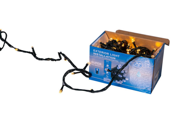 Descriere Instalatie Lumini de exterior, fir 100 Led- Lumina calda 10m, cu mufa de imbinare, fir gros Ø2.5mm culoare verde inchis, caseta joc de lumini. Acest fir de instalatie a fost conceput pentru a putea fi utilizat si la Exterior( la decorarea stalpilor, copacilor,etc.) Rezistenta sporita la ploaie, ninsoare, vant, inghet, etc. Clasa A+++ , IP44 * Imaginile, culorile si caracteristicile descrise au caracter informativ și pot contine mici inadvertente sau diferi ocazional fața de produsele prezentate pe site.