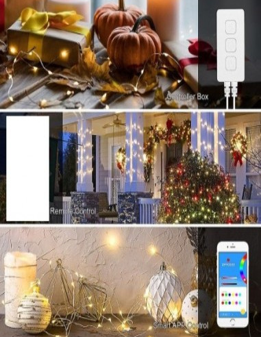 Pomisor Decorativ Cu Instalatie QX-SD2195WW, Pomisor cu 108 Leduri Alb Cald Instalatie QX-S100-R-E, Instalatie Tip Banda Smart, 100 Led, RGB, 10m, APP, Bluetooth cu telecomanda inclusa