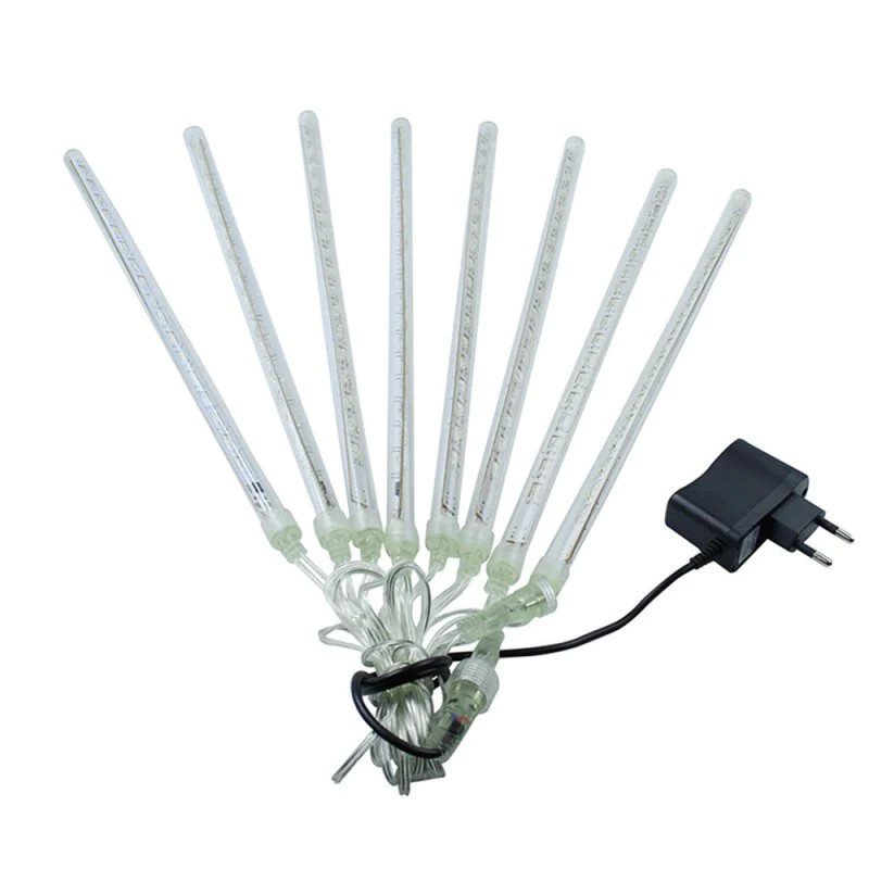 Instalație Tip Meteori, tub 80cmM, 8 Tuburi 80 cm Multicolori, 4.5m, Interconetabil, Instalatie luminoasa cu 8 tuburi pentru sarbatori Instalație Tip Meteori, tub 50cmWW, 8 Tuburi 50 cm Alb Cald, 4.5m, Interconetabil, Instalatie luminoasa cu 8 tuburi pentru sarbatori