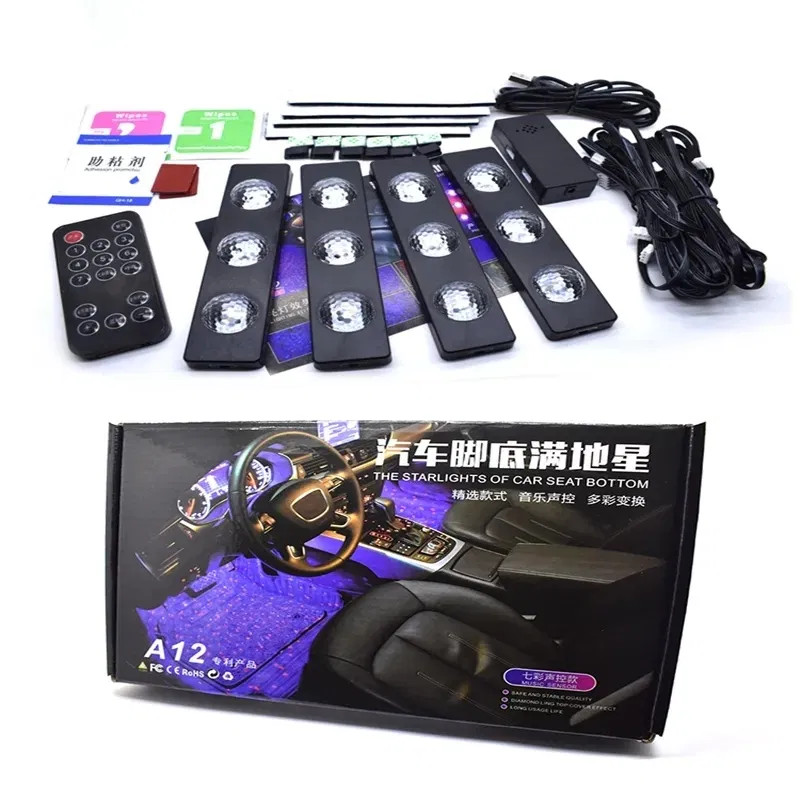Set lumini ambientale Starlight RGB cu telecomanda 7 lumini A12, Lumini Auto Interior Star Light pentru Scaune