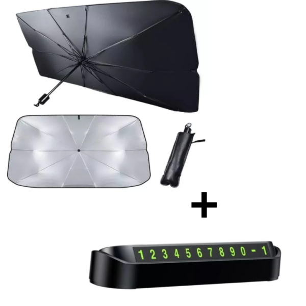 Oferta Limitata !!! Parasolar Tip Umbrela Pentru Parbriz + Suport Numar Telefon Auto Card de Parcare