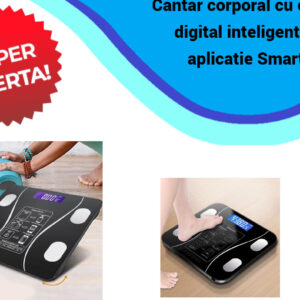 Cantar corporal cu ecran digital Iluminat, aplicatie smart, compatibil android/Ios, conectare bluetooth, termometru, 180 Kg Max, 0250BSL18