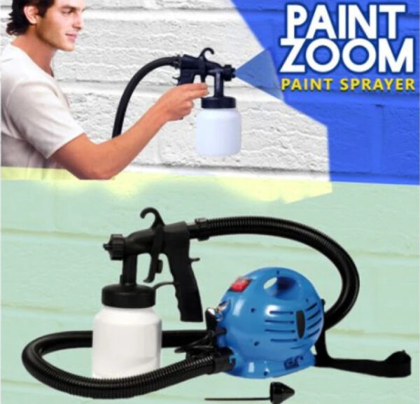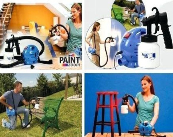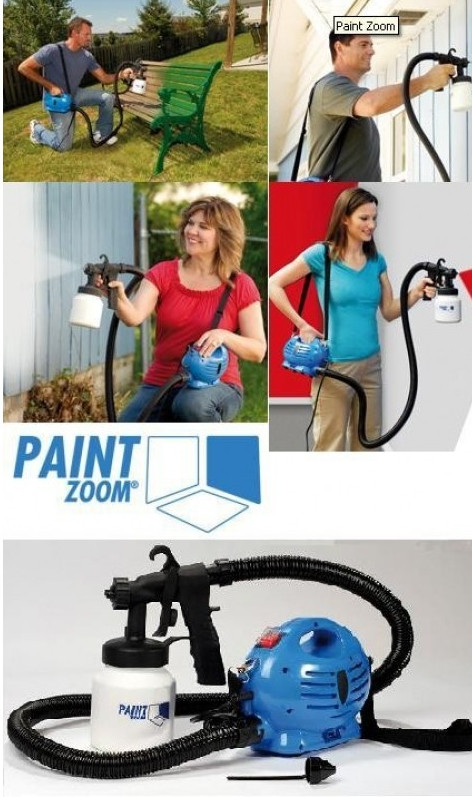 Paint Zoom, este un aparat sistematic pentru vopsirea sau zugravirea suprafetelor mari, in special, cum ar fi: garduri, obiecte de mobilier, banci, pereti interiori sau exteriori. Cu un efort minim si intr-un timp foarte scurt, puteti acoperii suprafete foarte mari, datorita doar spray-ului pentru vopsit si zugravit, Paint Zoom. Datorita recipientului in care se tine vopseaua, pierderile de vopsea vor fii foarte reduse, astfel economisiti si bani si timpul pe care inainte il pierdeati pentru curatarea dezordinii provocata de restul ustensilelor vechi. Fiind un aparat multifunctional, Paint Zoom este potrivit pentru orice fel de vopsea sau lac. Avantaje Paint Zoom: -Sunt disponibile trei setari pentru jetul spray: vertical, orizontal, circular -Spray-ul poate fi ajustat pentru a se asigura o distributie uniforma a vopselei -Functioneaza in toate unghiurile -Rapid de folosit, usor de transportat, usor de curatat -Cantitatea de vopsea poate fi dozata cu precizie -Se poate vopsi cu lac sau vopsea -Potrivit atat pentru interior cat si de exterior -Functioneaza pe suprafete aspre, denivelate sau curbate -Vopseste caramida, ciment, stucco, lemn sau sticla Pachetul Paint Zoom include: -Unitatea centrala -Furtunul pentru aer -Bretea de umar -Cupa pentru masurarea vascozitatii -Pistolul spray -Recipientul pentru vopsea -Tija pentru curatare si desfundare Detalii tehnice Paint Zoom: -Alimentarea se face de la reteaua electrica 220V. -Capacitate rezervor: 800ml -Lungime furtun: 1,5m -Putere motor: 650W