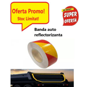 Rola Banda Reflectorizanta Auto Rosu cu Galben 25 m liniar, 015ZD Set 2 Lumini LED Pentru Ventil Cauciuc, Lumina Roz, Rezistente la Apa si Soare, Senzor de Miscare, 050ZD