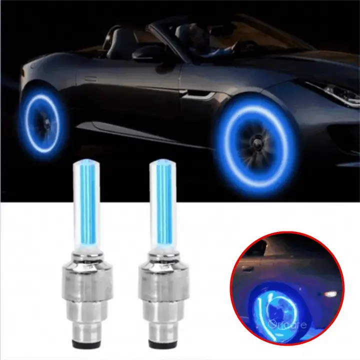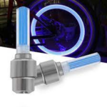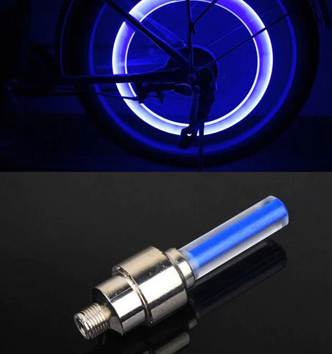 Set 2 capace valva cu LED albastru pentru bicicleta, senzor de lumina si miscare