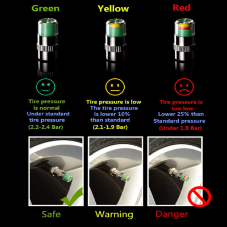 Capacele valve cu indicator a presiunii in pneuri 2.4 Bari, 4 bucati.,