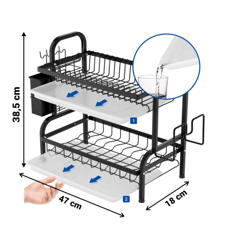 Un suport de vase cu 2 etaje, negru, este alegerea perfectă pentru orice persoană care dorește să-și organizeze vasele și tacâmurile într-un mod elegant și eficient. Acest suport de vase este fabricat dintr-un material de înaltă calitate, ceea ce îl face durabil și rezistent. Cu un design modern și elegant, acest suport de vase se potrivește perfect în orice bucătărie și oferă un spațiu de depozitare suplimentar pentru vasele și tacâmurile tale. Cu două etaje, acest suport de vase oferă suficient spațiu pentru a depozita vasele și tacâmurile tale preferate. De asemenea, acesta este ușor de asamblat și de curățat, ceea ce îl face o alegere excelentă pentru orice persoană care dorește să-și organizeze bucătăria într-un mod eficient. Datorită culorii sale negre, acest suport de vase se potrivește perfect cu orice design de bucătărie și poate fi folosit în orice decor. Acesta este, de asemenea, ușor de depozitat și de transportat, ceea ce îl face ideal pentru persoanele care călătoresc frecvent sau care locuiesc în apartamente mici. Mentiune: Vanzatorul face eforturi permanente pentru a pastra acuratetea informatiilor din acesta pagina. Rareori acestea pot contine inadvertente: Imaginile folosite si textele de pe SITE au caracter informativ și pot varia sau diferi ocazional față de caracteristicile produselor prezentate. Toate promotiile prezente in site sunt valabile in limita stocului.